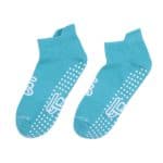 - Made from a soft and stretchy blend of 80% cotton, 17% nylon, and 3% spandex, these light blue socks feature white antislip dots for enhanced grip during workouts.